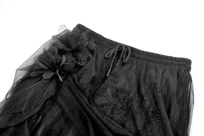 Gothic Court Floral Pleated Tulle Maxi Skirt KW422